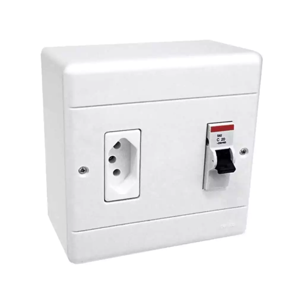 Essa caixinha da perlex é perfeita para a instalação de ar condicionado ou equipamento que demande bastante energia elétrica, até 20A.