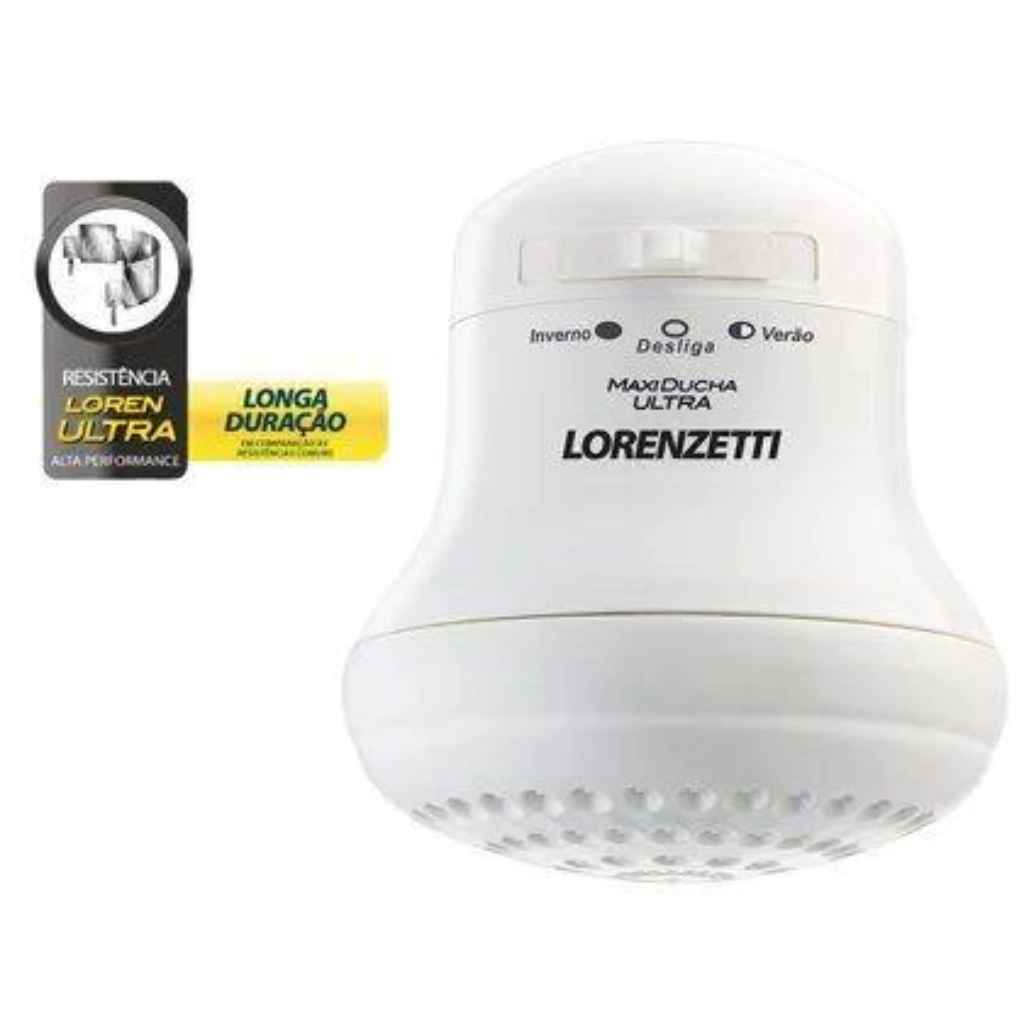 Chuveiro Ducha Lorenzetti Maxi Ducha Ultra 127v 5500w. A Maxi Ducha agora vem com a nova resistência loren ultra. A tecnologia loren ultra revoluciona o conceito de durabilidade e desempenho em comparação as resistências comuns. Com espalhador de grandes dimensões, a ducha proporciona um banho relaxante, pois oferece uma vazão uniforme de água. Seu sistema de aterramento gera proteção contra choques aumentando ainda mais a segurança no seu banho. Características: Cor: Branco Resistência com longa duração. Compatível com aquecimento solar. Grande espalhador Economiza até 42% de água. Proteção contra choques. Especificações Técnicas: Marca: Lorenzetti / 3 Temperaturas Modelo Maxi Ducha Ultra Potência 5500w Voltagem 127v ATENÇÃO! A ferramenta não é bivolt, confirme a voltagem antes de finalizar a compra.