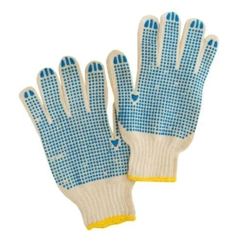 Luva Tricotada em algodão pigmentada com pontos em PVC.