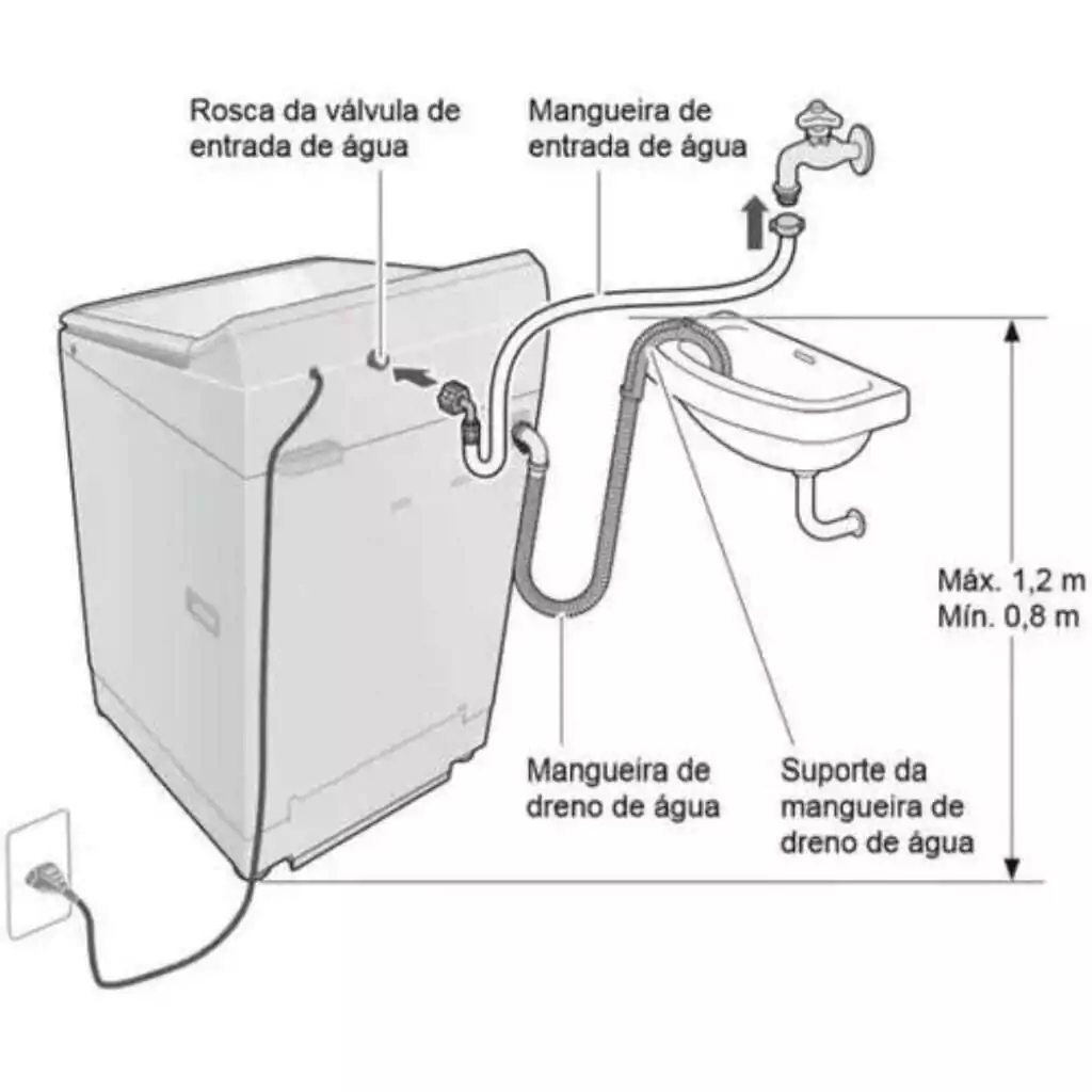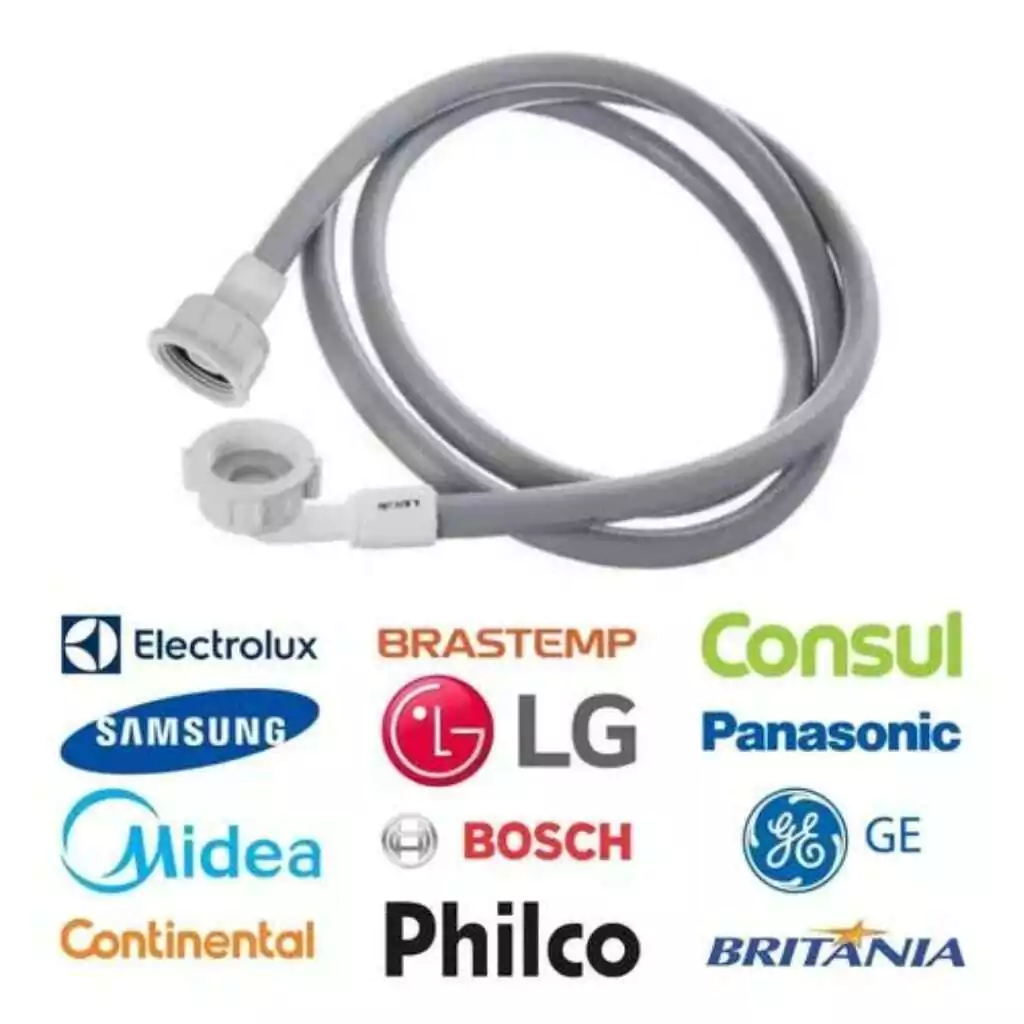Mangueira de entrada de água para abastecimento da máquina de lavar. Fácil instalação, maior flexibilidade e durabilidade.