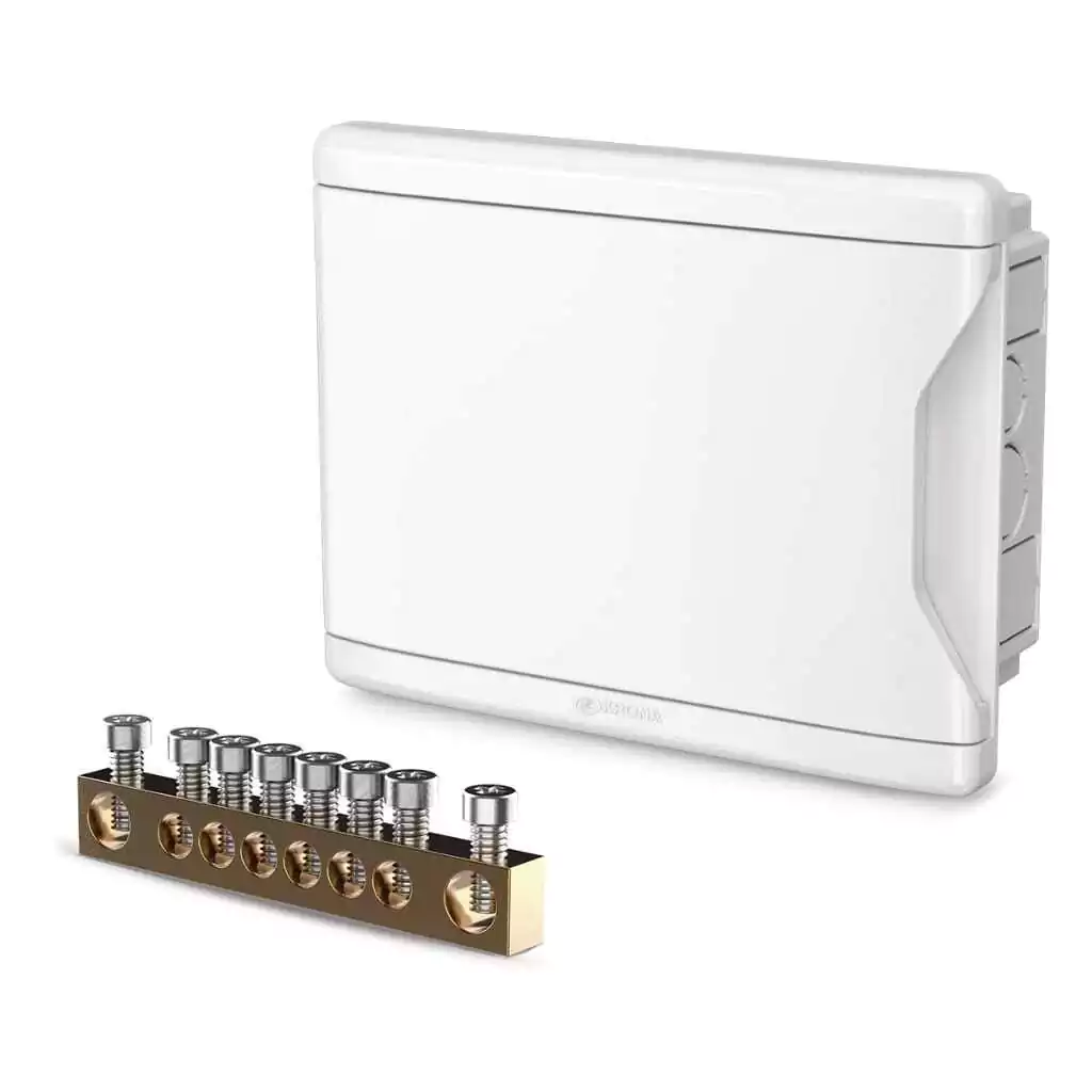 • Fácil instalação: Entrada para bitolas de 20 a 40mm no fundo e nas laterais. Barramento permite fixação nos 4 lados do quadro de distribuição e sistema de trilho por simples encaixe.