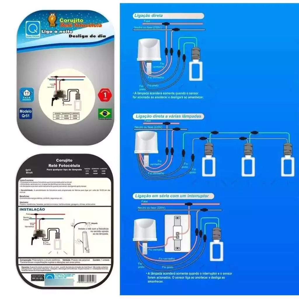 Sensor Relé Fotocélula Fotoelétrico Acende a Noite e Apaga de Dia Qr51