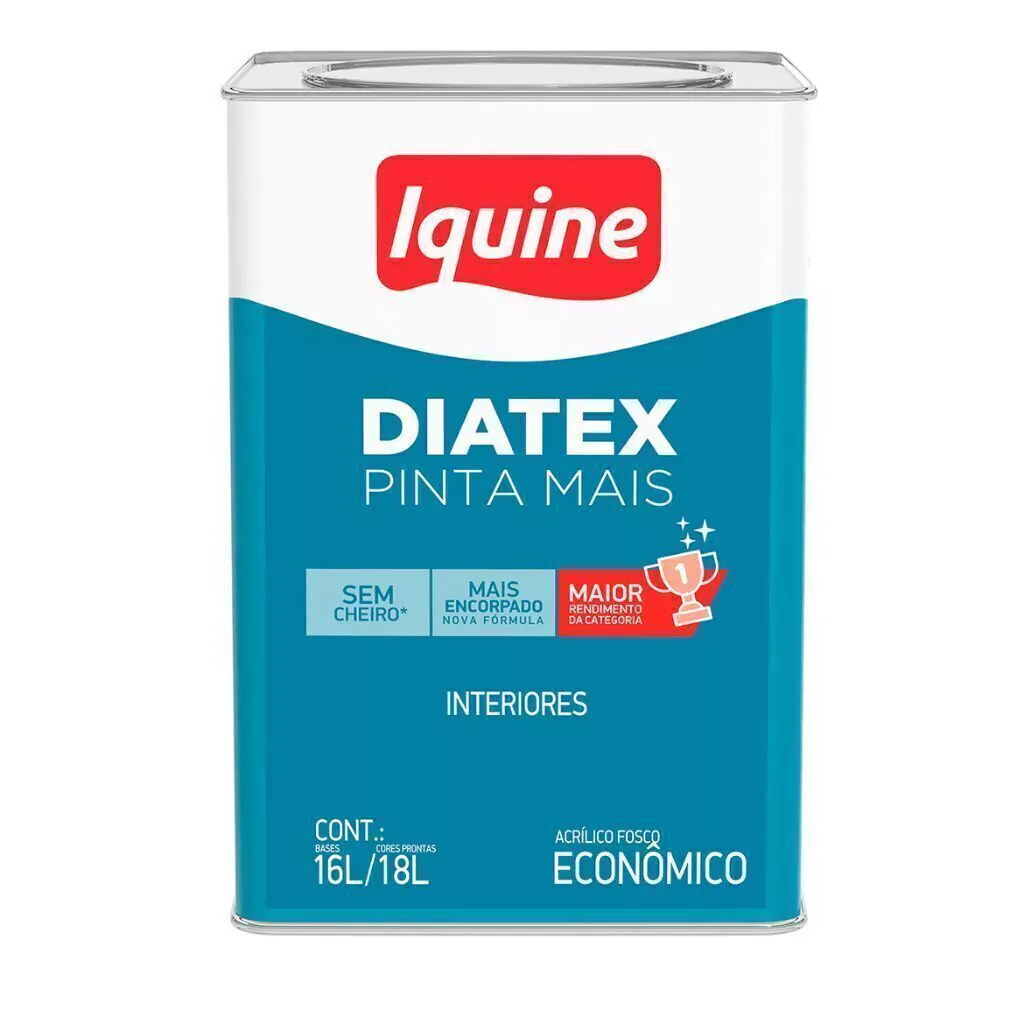 A TINTA DIATEX PINTA MAIS 16L IQUINE (BASE) é a escolha ideal para quem busca qualidade e praticidade em suas pinturas. Esta tinta látex aditivada com antimofo oferece uma resistência superior, garantindo um acabamento impecável e duradouro.