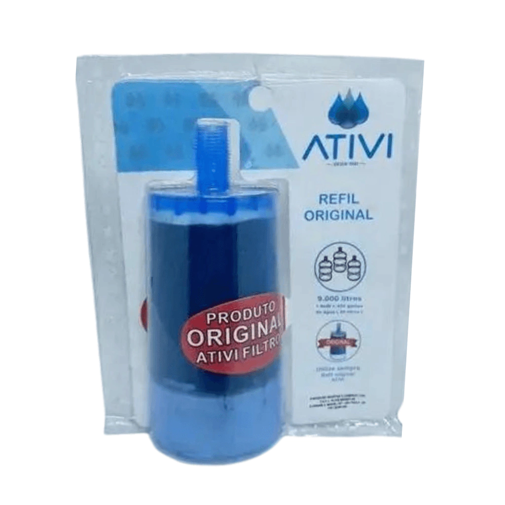 O refil ativi filtro original tem alta capacidade de filtragem , tendo uma vida útil em media de 9.000lts de água / 450 galoes de água ( 20 litros )