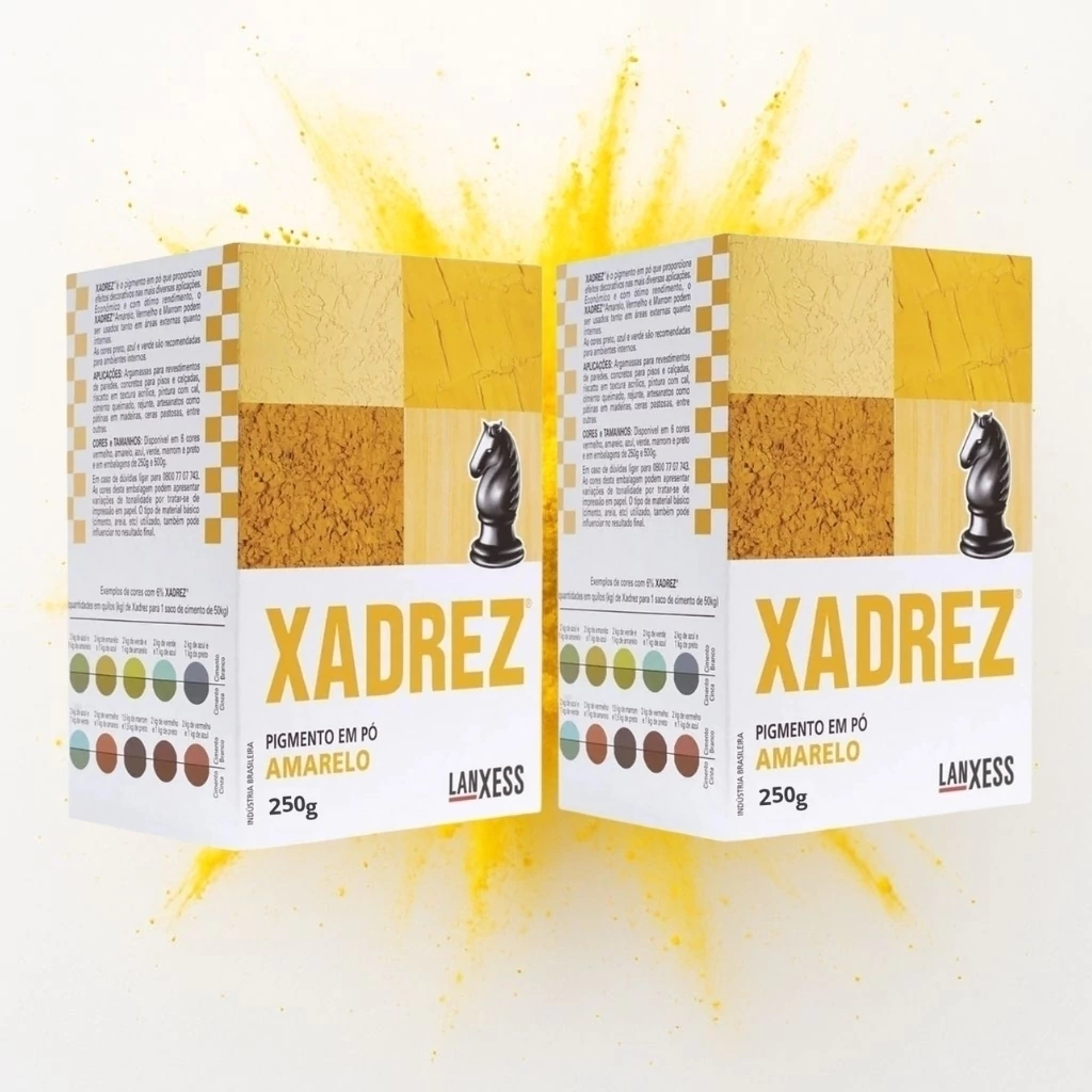 O Xadrez em Pó Amarelo Lanxess é um pigmento mineral versátil para tingir tintas à base d’água, cal, rejuntes, argamassas e misturas de cimento. De fácil dispersão, entrega cor intensa e uniforme, permitindo ajustar a tonalidade pela dosagem. Ideal para personalização de cores em obras e reformas, com ótimo rendimento e estabilidade cromática em aplicações internas e externas.